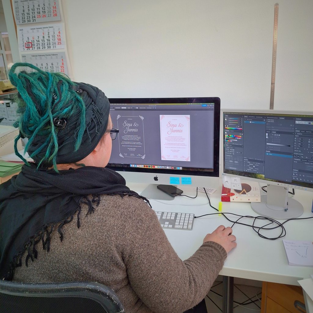 Wir begleiten Ihr Projekt von der ersten Idee bis zum fertigen Produkt, beraten Sie individuell und sorgen dafür, dass Ihre Drucksachen nicht nur gut aussehen, sondern auch wirklich wirken.