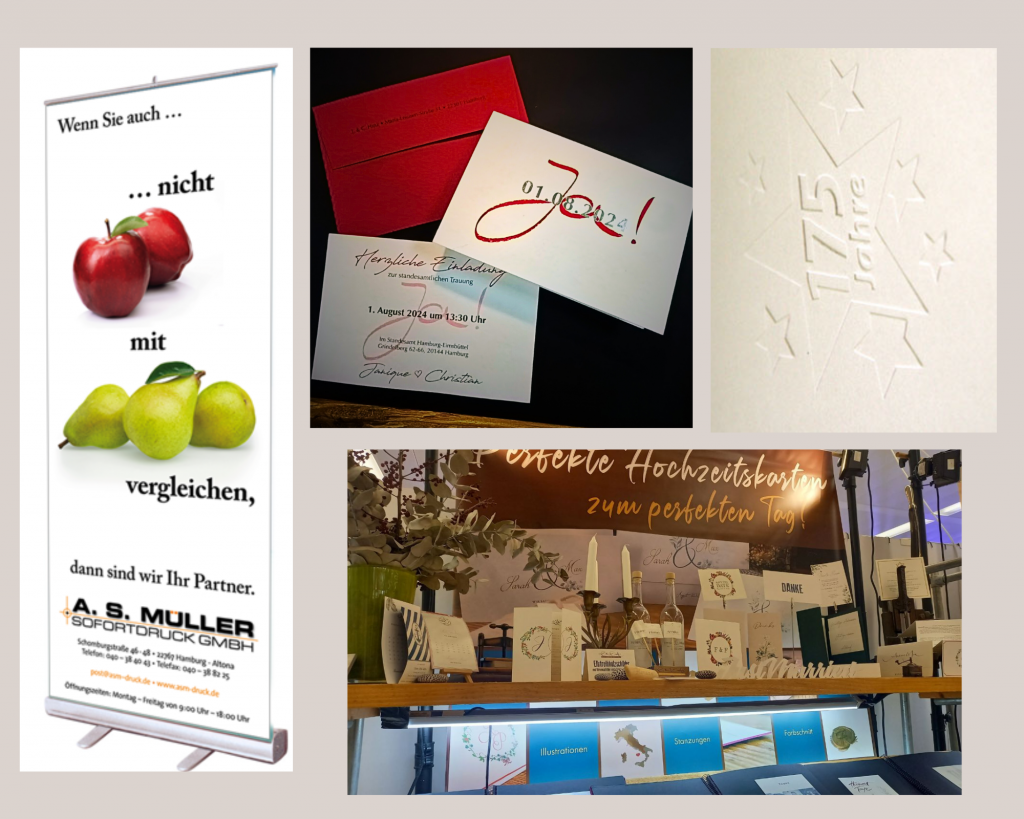 Ob klassische Visitenkarten, auffällige Großformate oder besondere Sonderprojekte – wir setzen Ihre Vorstellungen zuverlässig und mit Liebe zum Detail um.