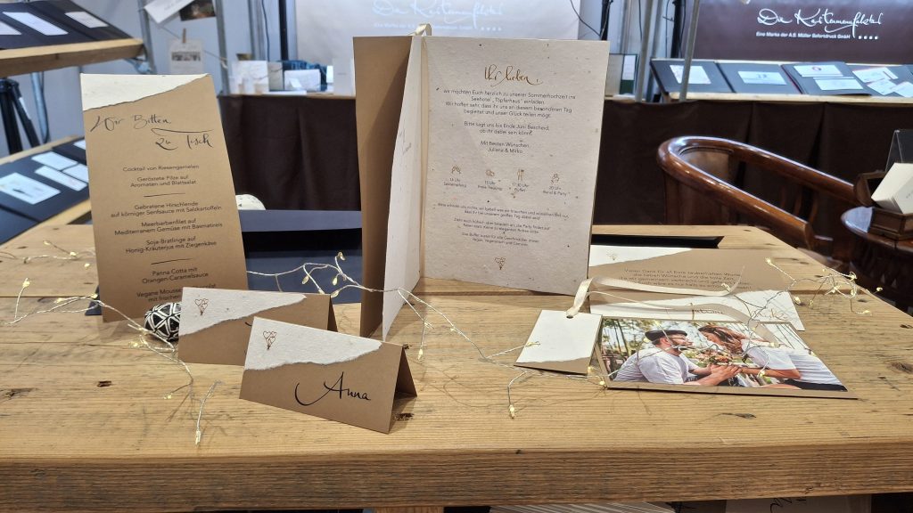 In unserer Kartenmanufaktur entstehen individuell gestaltete Hochzeits- und Einladungskarten in persönlicher Abstimmung mit einer Grafikdesignerin und in sorgfältiger Handarbeit gefertigt.